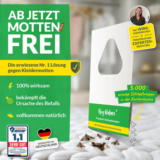 Mit unseren Schlupfwespen triffst du die richtige Wahl. Damit wirst du deinen Mottenbefall schnell wieder los.